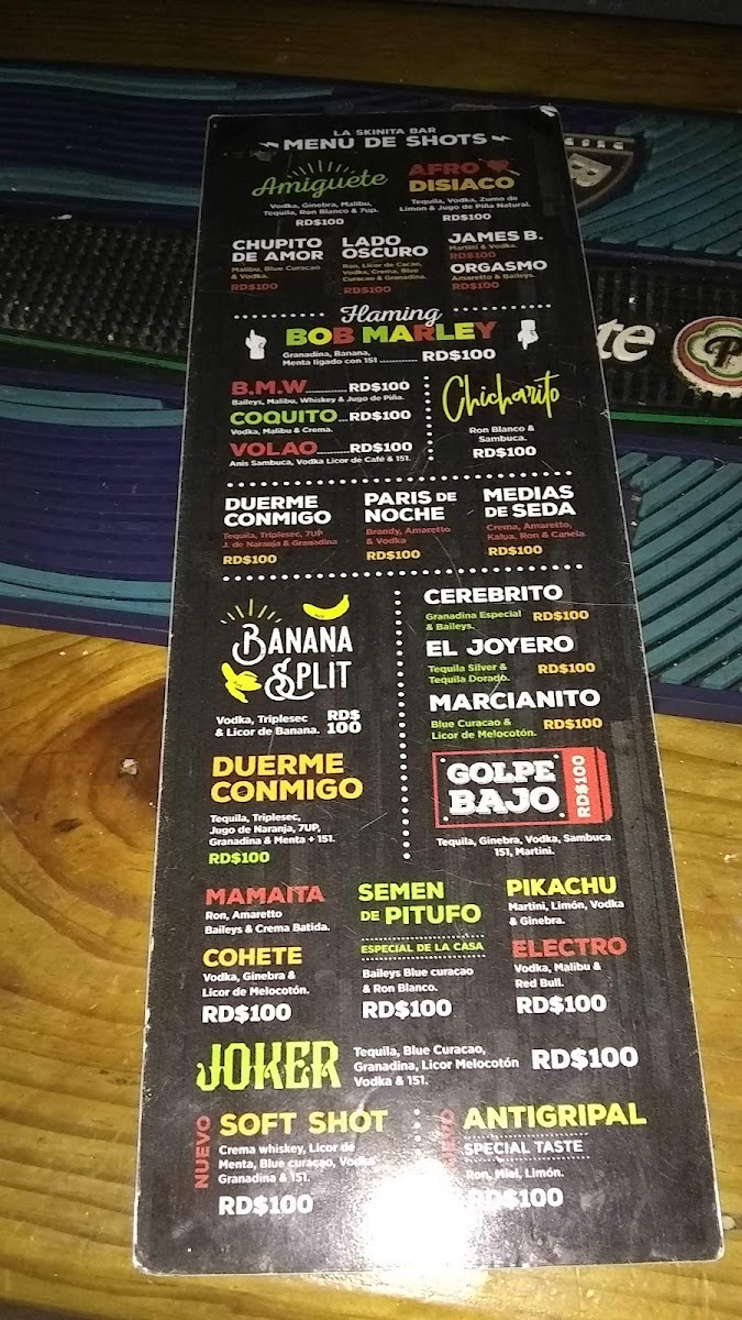 The menu at Skinita Bar & Grill in La Romana offers a delightful mix of hearty dishes perfect for any time of day. One standout option is the Sandwich de Jamón Queso Y Huevo En Pan Integral, a delicious combination of ham, cheese, and egg served in whole wheat bread, providing a satisfying, flavorful bite. For those seeking something a bit more filling, the Wrap Tripleton Especial de la Casa Lleva Pechuga Bistec Jamón de Pavo Y Queso Danes is a must-try. This wrap brings together chicken breast, beef steak, turkey ham, and Danish cheese in a wrap that balances both richness and freshness. Another highlight is the Bistec Y Pechuga A la Plancha Con Plátano Frito, which pairs grilled steak and chicken breast with crispy fried plantains, a classic Dominican combination that hits all the right notes. For a more indulgent option, the Skinita Burgue Con Carne Angus de 6oz is the perfect choice, offering a juicy 6oz Angus beef burger that’s full of flavor and pairs wonderfully with the side offerings. With its mix of savory and satisfying options, Skinita Bar & Grill’s menu ensures there’s something for everyone, whether you're looking for a light snack or a hearty meal.
